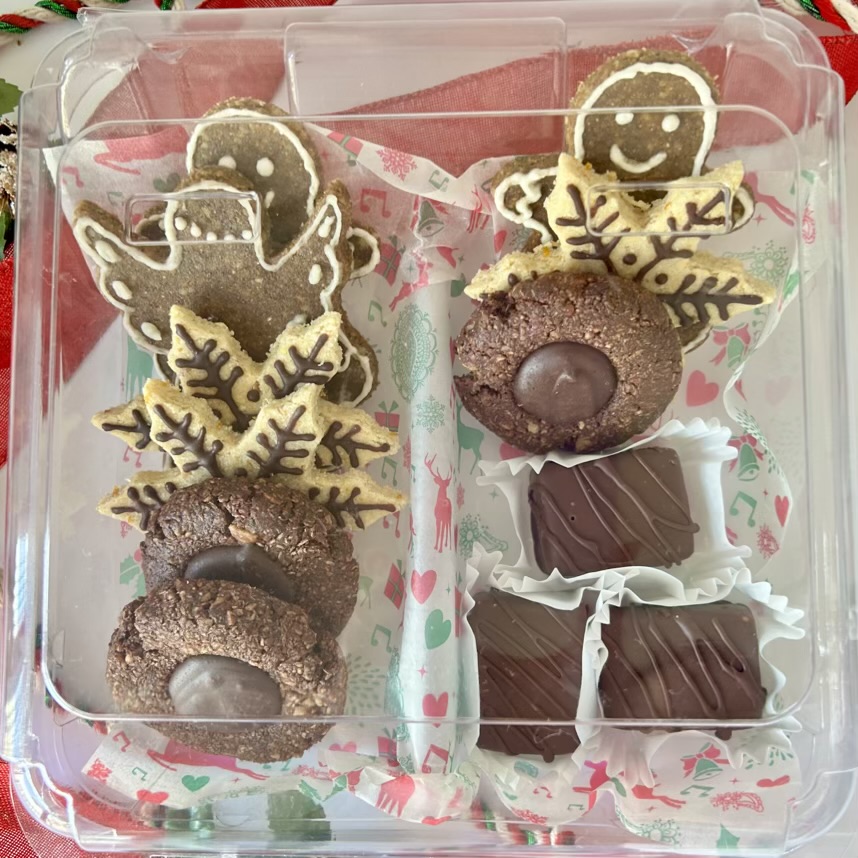 ¡Una festiva fusión de sabores para dar la bienvenida a las fiestas! Chocolate y menta, naranja y chocolate, galletas de jengibre especiadas y trufas de tiramisú. El chocolate negro y la menta son el dúo casi perfecto, además el sabor a naranja de la crujiente galleta combinado con el delicado chocolate es delicioso. Las especias de las galletas de jengibre junto con imaginarlas en la boca te deleitan con una fusión dulce y ligera. Es digestivo, vigorizante y reconfortante. Estas delicias son perfectas para celebrar la temporada, aportando un toque decadente y naturalmente azucarado a un clásico navideño favorito.