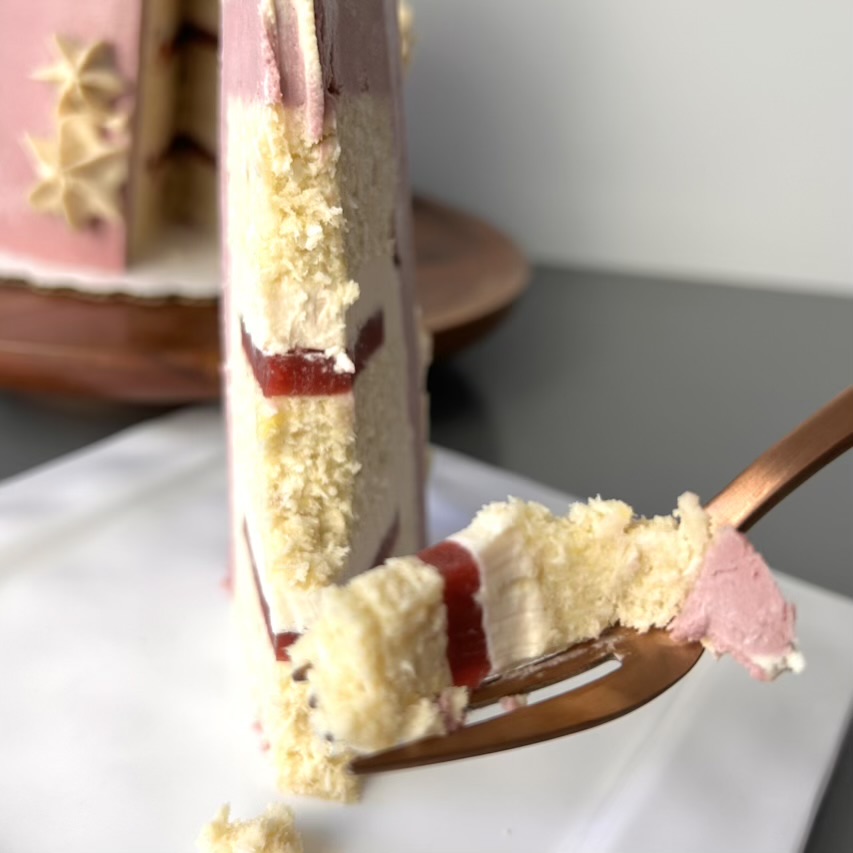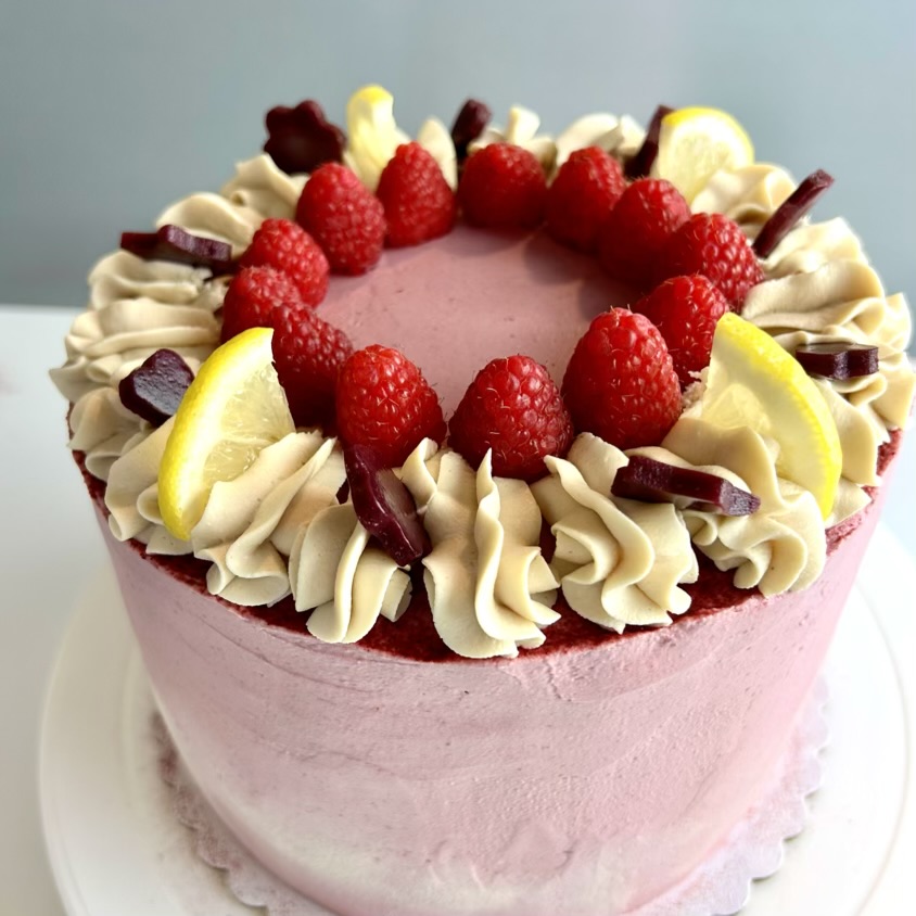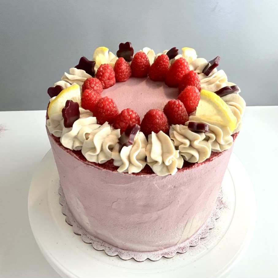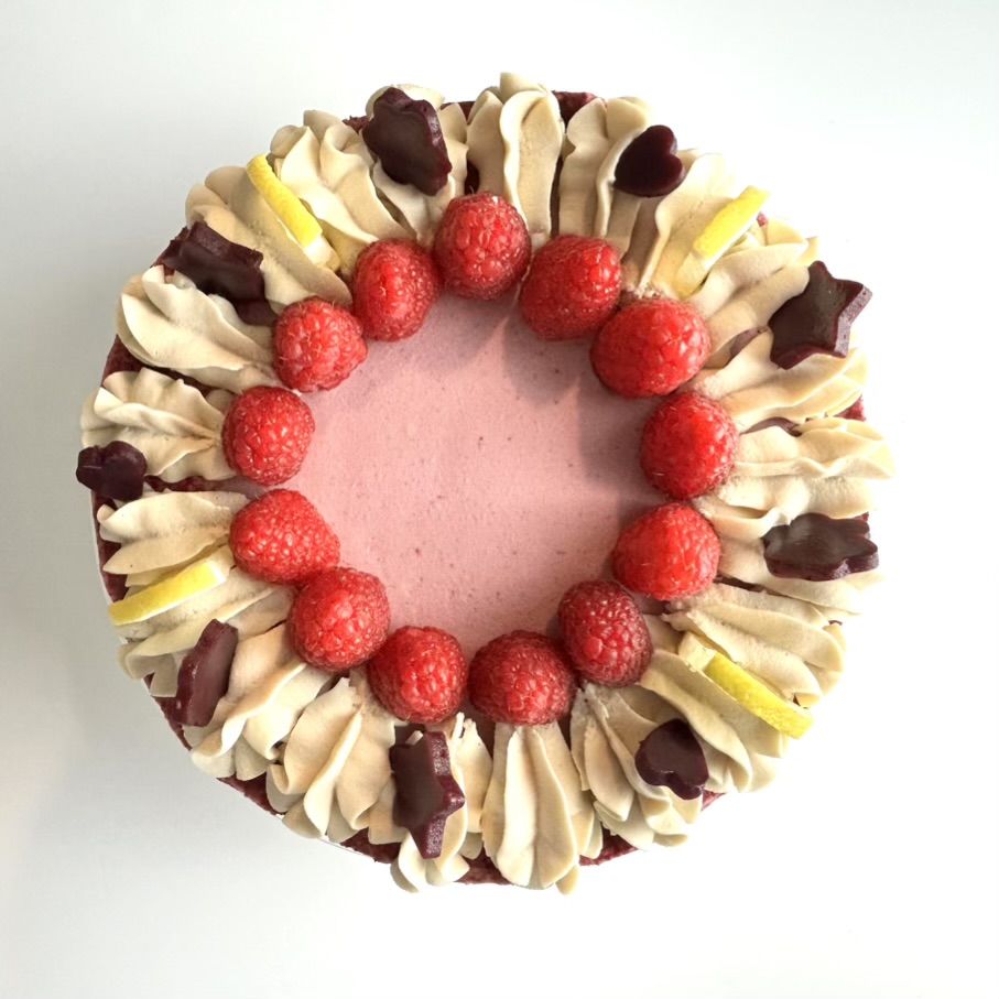 Anacardos germinados, carne de coco joven, crema de coco, almendras germinadas y blanqueadas, sirope de arce, calabacín, aceite de coco virgen extra sin refinar, mango-frambuesas congeladas, coco rallado, frambuesas congeladas, alulosa en polvo, cáscara de psyllium en polvo, harina de coco, extracto de vainilla sin alcohol con semillas, aceite esencial de limón, zumo de limón, ralladura de limón, remolacha en polvo, extracto aromatizante de frambuesa, cardamomo molido y sal rosa.