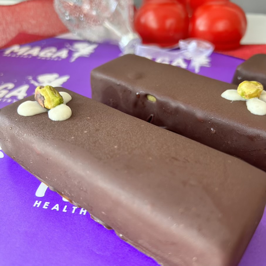 It is a healthy and gourmet Christmas temptation, handmade with clean ingredients. At the first bite you feel the crunch of the chocolate coating that combines with the pistachio cream mixed with drops of germinated and dehydrated buckwheat, which gives it the crunchy touch and ends with a small layer of white chocolate. You just feel that taste of well being in your mouth. The sensation is wonderfully very pleasant.